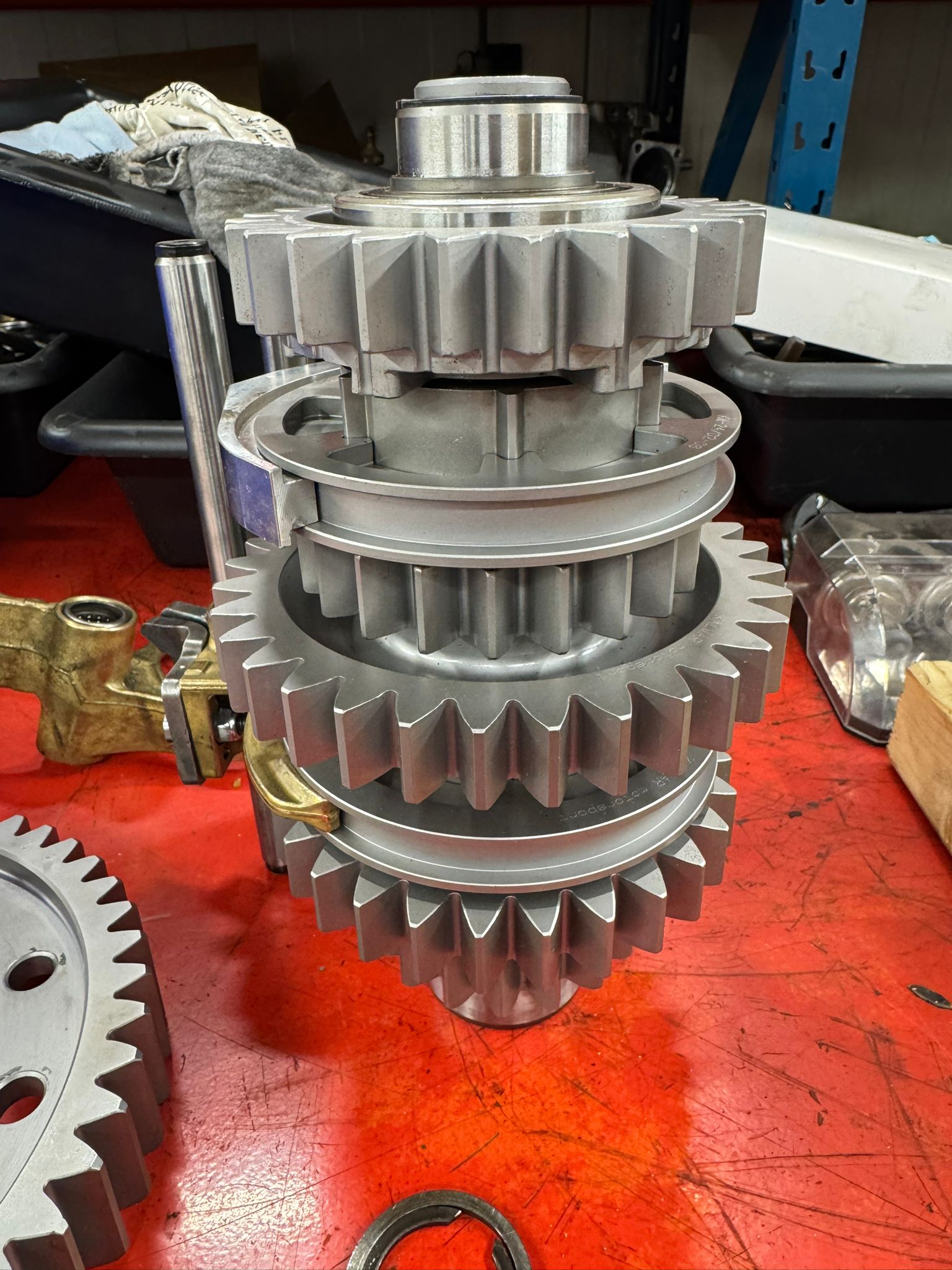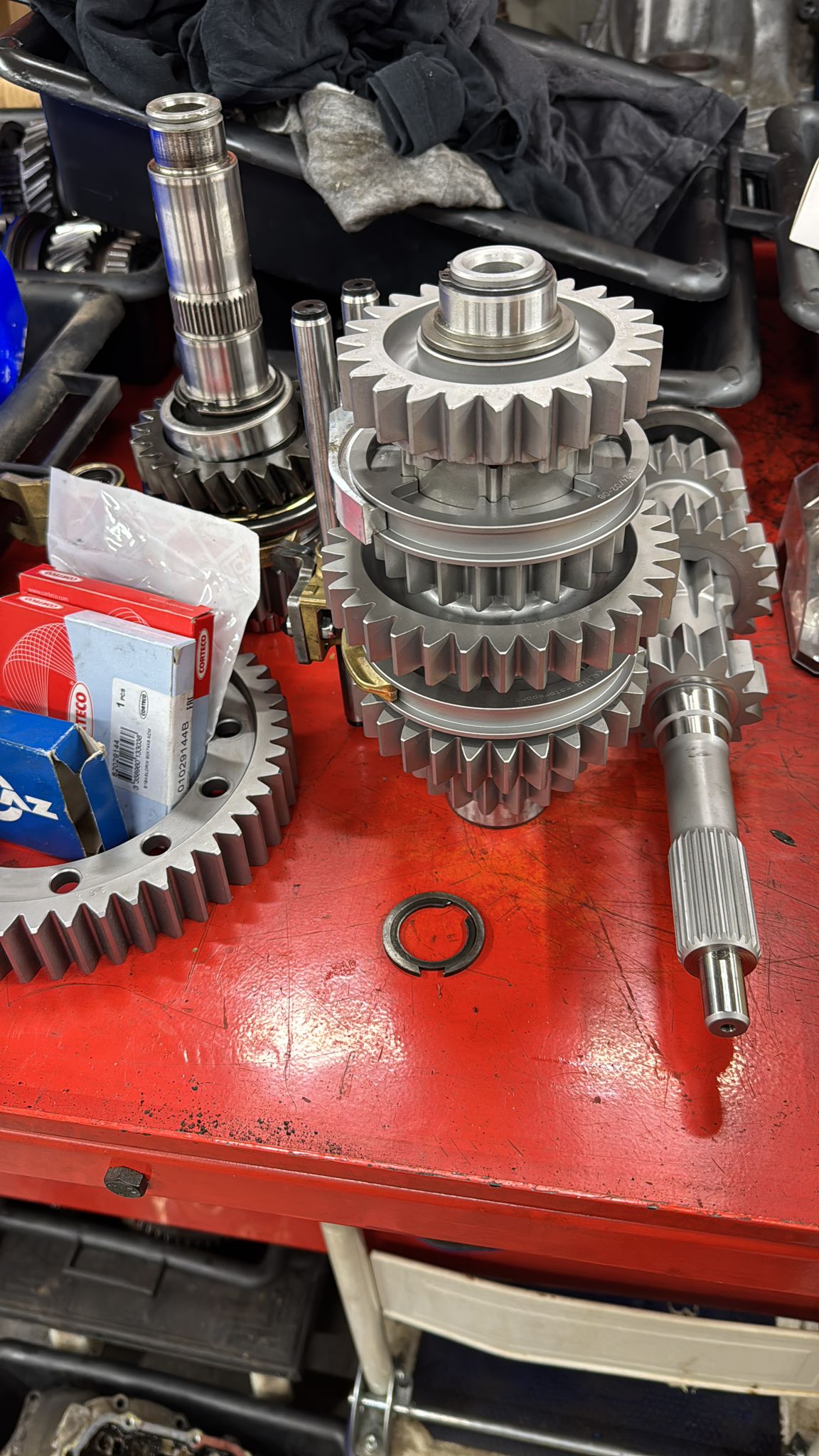 Hier de complete set inclusief final drive en rollagers, klaar voor opbouw.