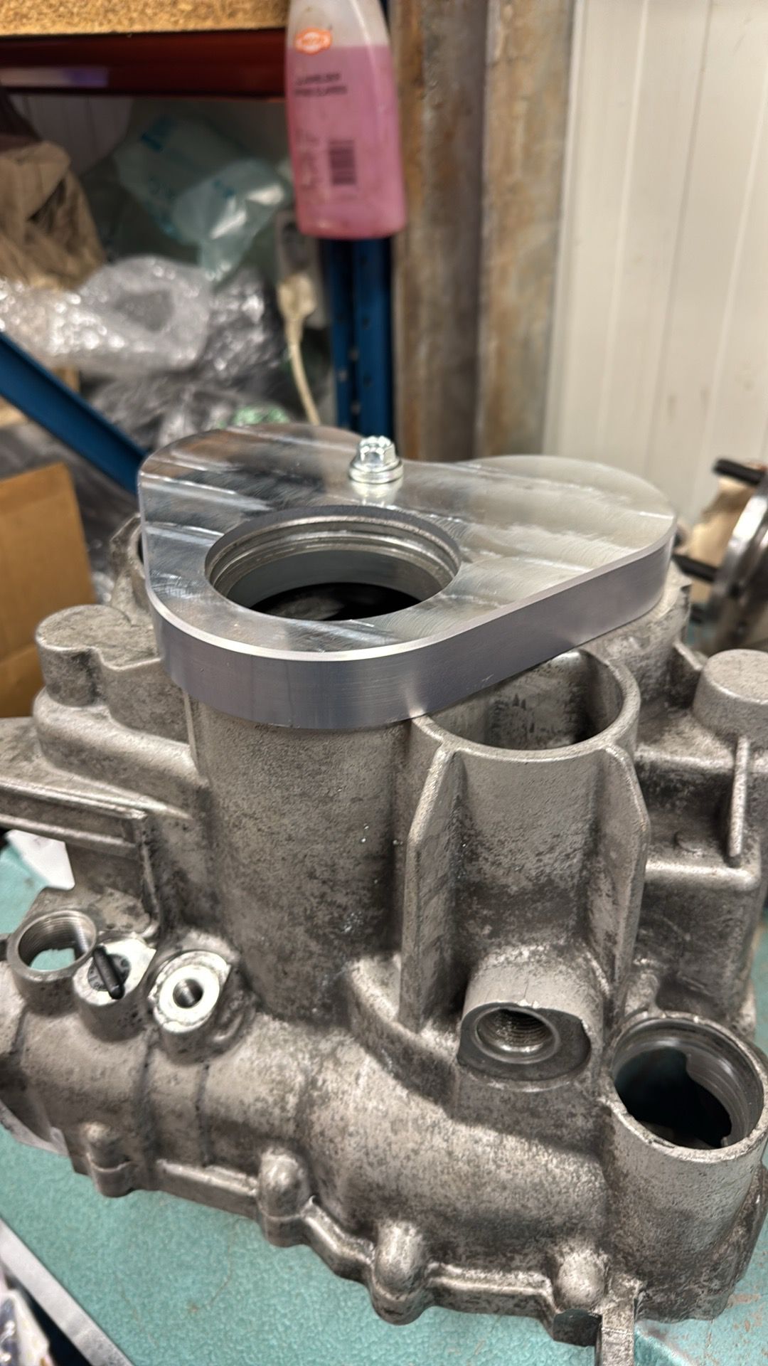 Hier zie je de aanpassing van het bakhuis van de billet 2.8 final drive